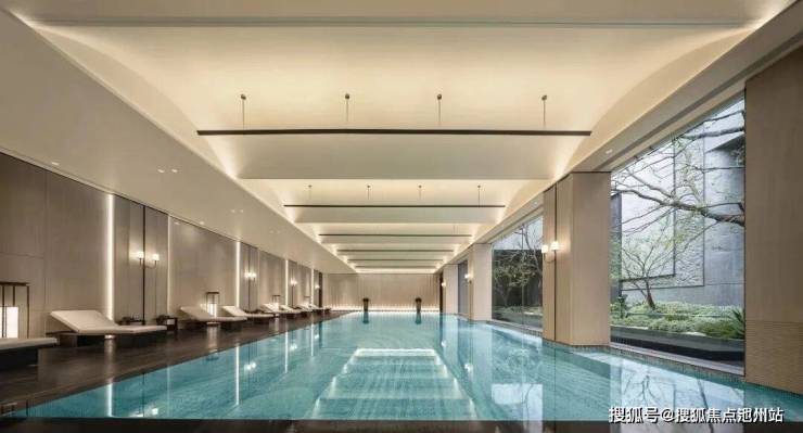 生活馆打破传统平面布局,创新性地将会所与泛会所融为一体,大面积玻璃幕墙消融室内外的界限,把茶室、健身房、瑜伽室、恒温泳池、私宴厅、棋牌室等空间都面向庭院景观,这样的配置,放眼全杭州都难得一见。