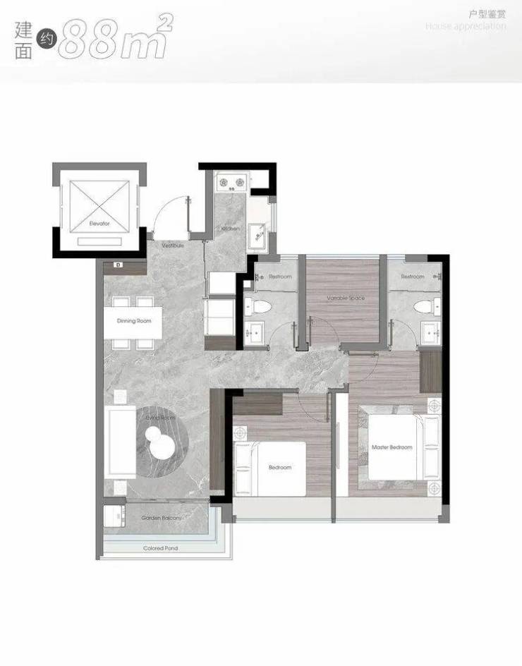 采用窄窗框设计,隐藏开启扇使建筑造型更匀称,视觉效果整洁大气。户型鉴赏建面约88㎡户型,南向面宽也高达约9.6米,开间进深比接近1:1的黄金比例,通透性和使用率达到Max级别。建面约96㎡户型,三开间朝南,在同一赛道上能直接秒杀对手。同是100㎡以下,市区拥有独立电梯厅的小户型,且配有全系统豪华主卧,只有它!