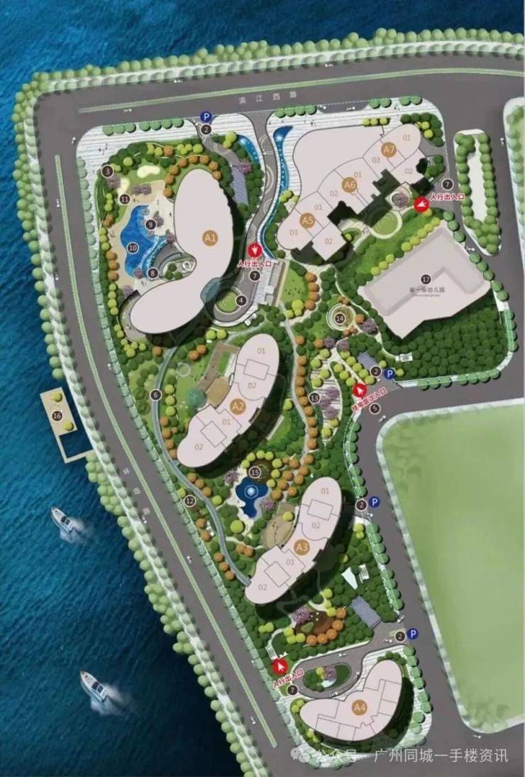 天誉半岛花园位于海珠区洲头咀,白鹅潭畔,三江汇聚之源,270度稀缺一线江景。小区共建7栋单体建筑:A1为酒店,A4为写字楼,A2/A3/A5-A7为超高层住宅。
