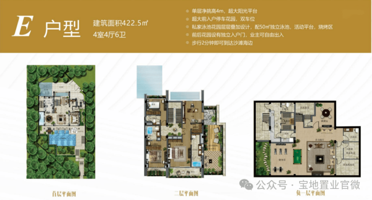 建筑面积约:422㎡ - 730㎡ 国岸上争藏别墅,只为少数派专属量身定制。