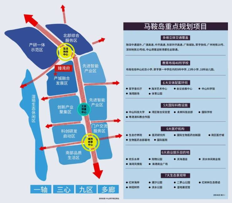 马鞍岛将前瞻性的建设40余所学校(在建中)、13大生态公园(在建中)、6大医疗机构(规划中)、7大文体配套(规划中)、6大商业娱乐目的地(规划中)。未来的马鞍岛,科学城创智中轴将呈现错落有致的城市天际线;岭南水街(规划中)、城市客厅(规划中)、创意风情街(规划中)、滨水休闲商业街(规划中)将成为潮流打卡休闲胜地;超甲级写字楼、五星级滨海酒店衣香鬓影,一个集科技、艺术、生态于一体的24小时智慧垂直城市,将构筑出一个活力新都会、深圳后花园。(信息来源:翠亨新区官网)