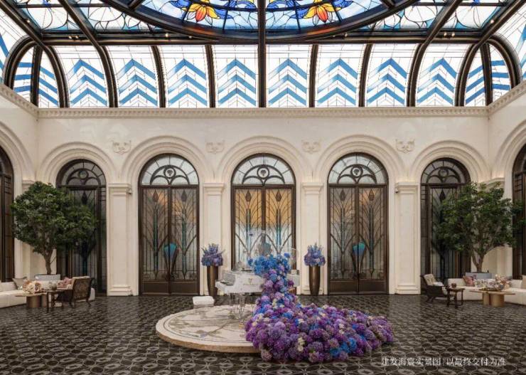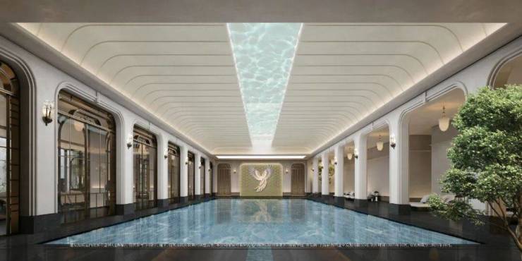 玉兰门庭—迎归大堂—莳花荟 为主轴,敬献步履生辉的归家艺旅: 玉兰门庭 如繁花盛绽, 尊华瑞鳞水景 聚运生财, 双尊铜狮 镇守家宅; 迎归大堂 流转光影艺韵, 百羽栖澜艺术雕塑、芦海宸韵非遗绣作 流淌摩登气韵; 莳花荟中央会客厅 移步异景,献映会客、休闲等雅会。
