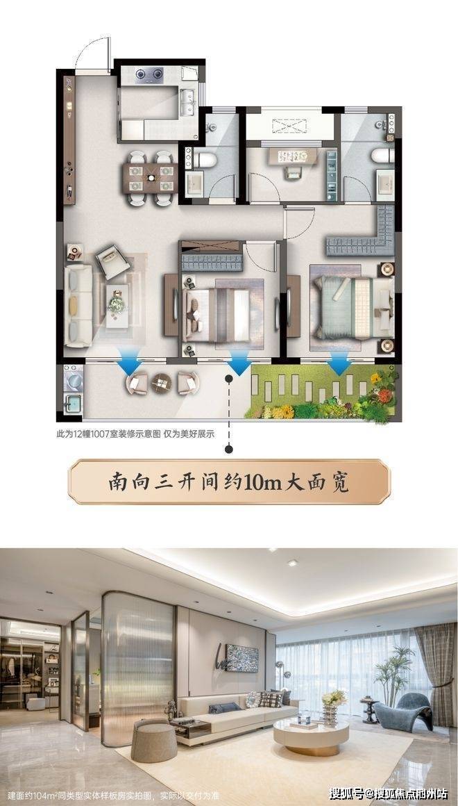 户型如果采光不好,家里难免昏暗阴冷,食物极易发霉。建面约104㎡户型三开间朝南,通风采光效果更佳,大人和孩子都可享朝南采光面,全家人尽享阳光呵护