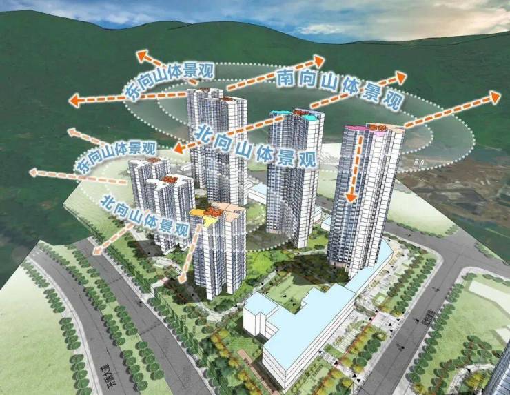 小区根据地势,对比路面抬高6米,打造更极致,更私密中心园林;建筑呈点列式布局,户户朝南,各户型均能享受全南向采光!