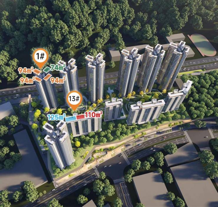 北向为占地约5000亩的龙头山森林公园,直线距离仅有100多米,再加上停车场上盖本身就抬高了不少,即便低楼层也能有不错的景观,加上低密度,有一定的改善素质,舒适度较高。