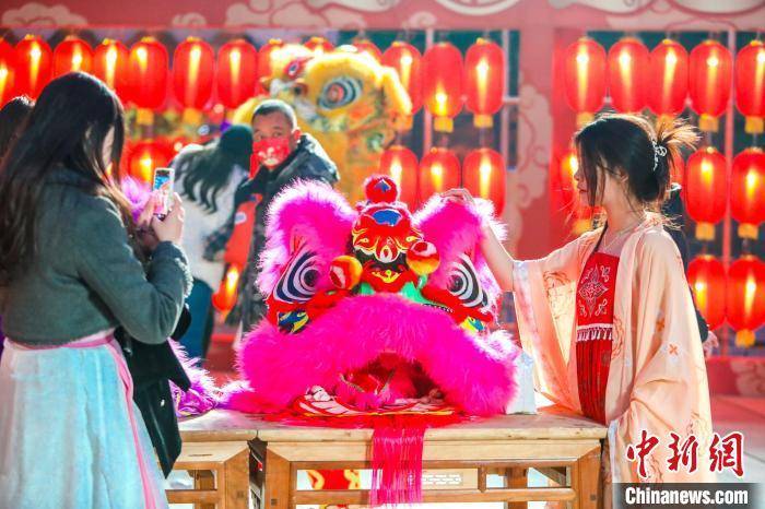 中新网武汉2月6日电(梁婷 曹巧红)“钟鸣楚天元宵夜”沉浸式灯会游园活动,5日晚在湖北省博物馆拉开帷幕。民众携亲伴友,体验传统年俗。