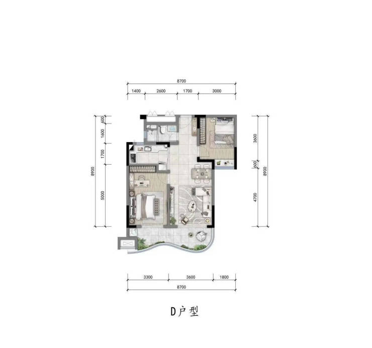 [D户型约85㎡两室两厅一卫]