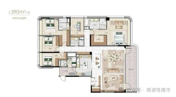 290㎡五房户型鉴赏◎——汇悦台创纪录4.6亿+网签单元设计师亲自执笔