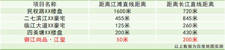 武汉核心滨江段部分楼盘离江距离