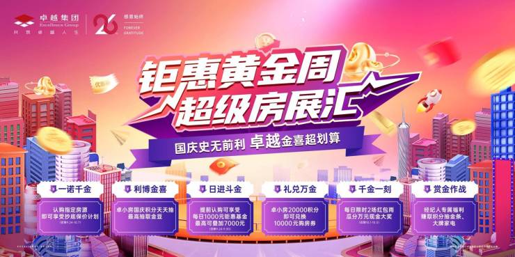 线上,卓小房权益版4.0全新升级,并于9月底上线积分系统,围绕卓小房,淘好房、抢惠房、高佣金、抽黄金。参与活动可赚取积分,并使用积分抽奖,积够20000积分即可兑换10000元购房券。10.1-10.3日,更有每天2场定时红包雨,瓜分万元现金红包。