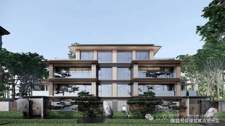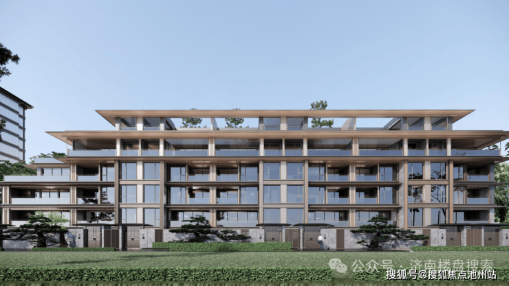 洋房和小高层:首层为爱马仕灰石材,标准层为金属铝板搭配水包砂真石漆。