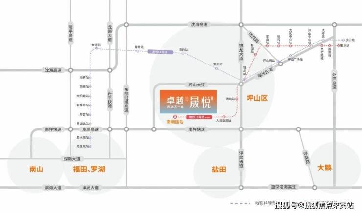 超集快速畅达:南坪快速、东部过境高速(在建中)、坪盐通道,3条快速速抵罗湖福田,约15km盐田沙头角、约25km罗湖莲塘/香港、约35km福田、约40km南山