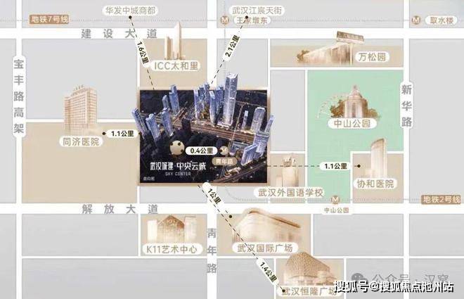 交通:项目下楼即是地铁2号线青年路站。它是武汉市唯一一个1公里范围内,汇聚4条轨道交通(1、2、3、7号线)的项目。