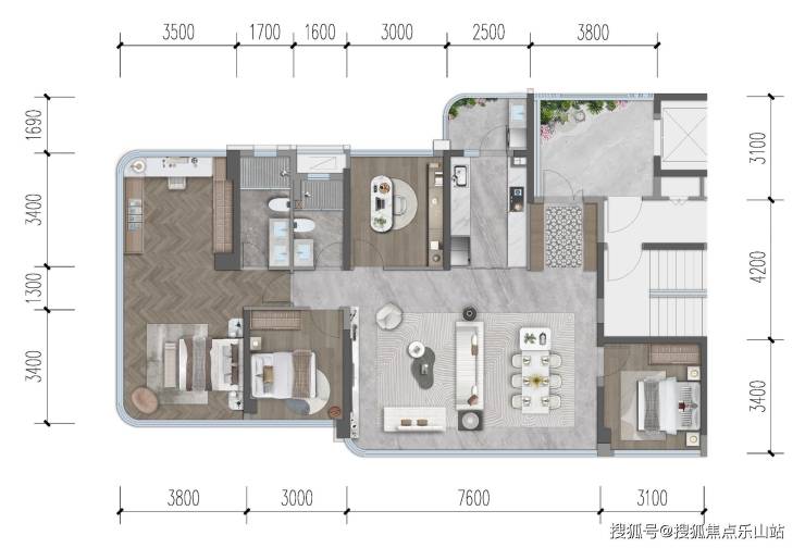 实得率超100%(最高约108%),洋房层高约3.3米(板块唯一7层真洋房),高层层高约3.1米。