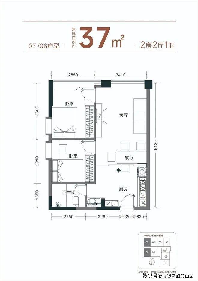【产品面积】约37㎡小两房(实际套内使用面积接近54㎡)
