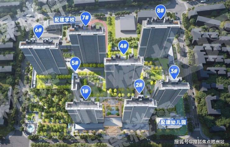 整个项目共计由四部分组成,由一所初中+幼儿园+8栋住宅+市政公园组成。
