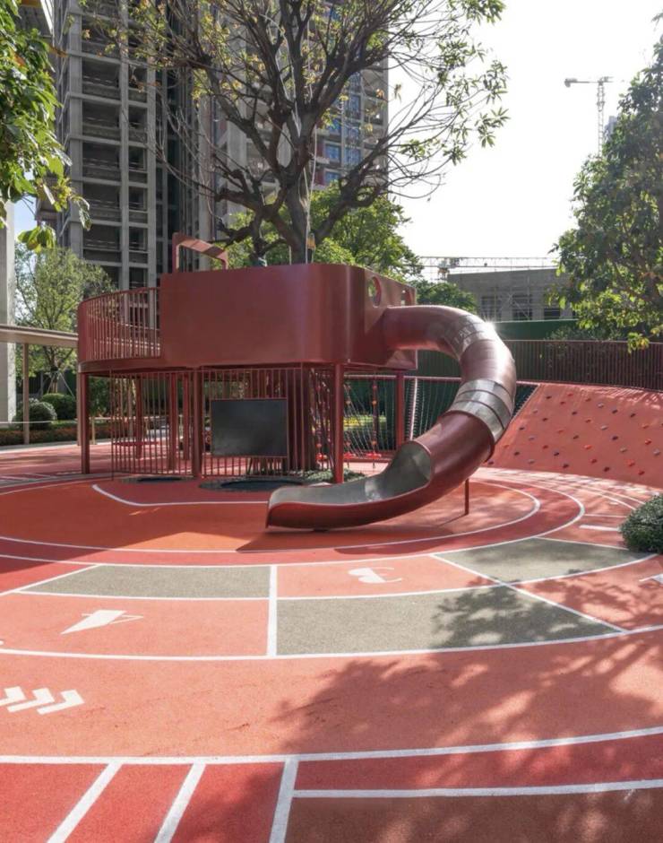 社区设施主要涵盖约300㎡子母无界泳池;约1500㎡24小时运动聚落,设置羽毛球、乒乓球、儿童游乐园、成人健身器材等;2大有氧跑道,园林中约180米元气跑道和运动场艺术跑道。