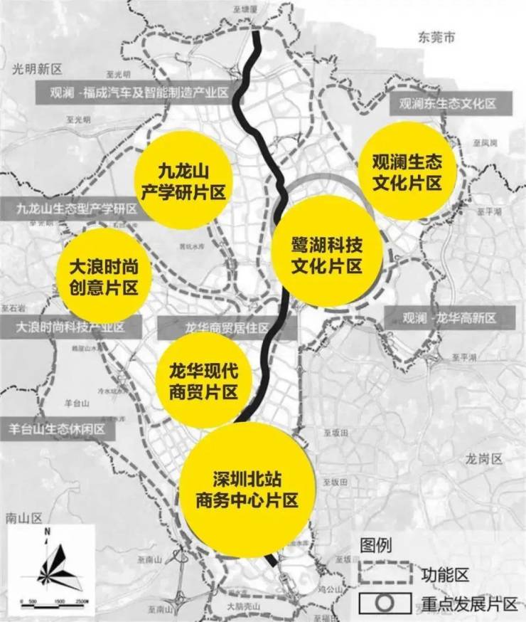 首先规划方面,因为大湾区+先行示范区双重政策利好叠加,“龙华中心”成为重点规划三个城市核心区之一,而观澜作为龙华发展的重中之重,除了是龙华区政府的所在地之外,还拥有龙华行政文化中心、九龙山数字城等叠加板块概念,产业、旧改、交通、教育等发展也是一直位于龙华前列。
