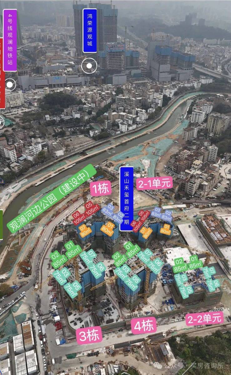 作为观澜鸿荣源观城最大竞争对手金光华溪山禾玺,如今怎么样了,最终开盘到目前去化确实也是比较一般,一期首府2024年9月开盘454套两年时间去化82%,基本快卖完了,2025年5月加推御府地块708套9个月时间去化26%,确实比较一般,主要是价格相比首府如还是高一些,如今实体样板房以及园林已经开放,看上去还是不错的样子,确实给后面销售带来一定的帮助,其中前面看河景的户型卖的还是不错的,特别是105户型目前快没啥楼层可选了,让我们看看他的实景园林如何