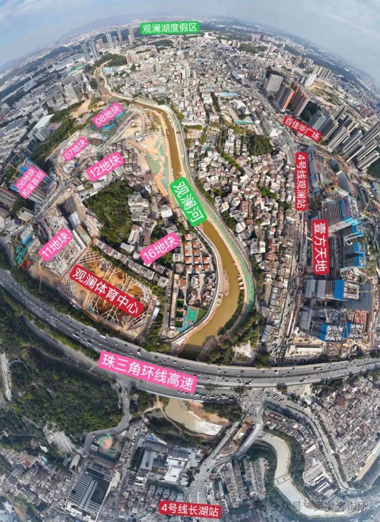 溪山禾玺原为龙华观澜金光华大布巷片区城市更新单元,大大小小地块共20个,主要为二类居住用地、商业用地、教育设施用地、公园绿地等,共分为4期开发建设。