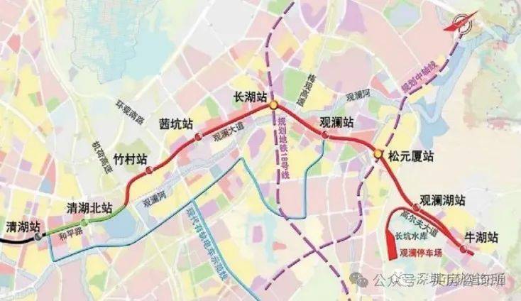 双轨:本案直线约500米即达4号线观澜站、有轨电车新澜站,可实现双轨出行,地铁10站即达深圳北站,16站即达福田CBD,横纵贯穿深圳,链接外环光明、龙岗、盐田等其他核心区。