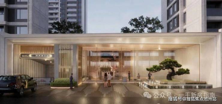 以“顶级酒店入口仪仗”为蓝本,叠加东方“松石水韵”意境。约60米舒展形象展示面营造“步入即显贵”的仪式感;约30米艺术豪奢定制门厅,弱化传统社区门庭的阻隔感,强化尊崇迎宾感。