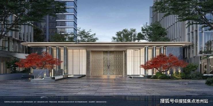宽约56米、高约5.4米的社区大门,质感十足!
