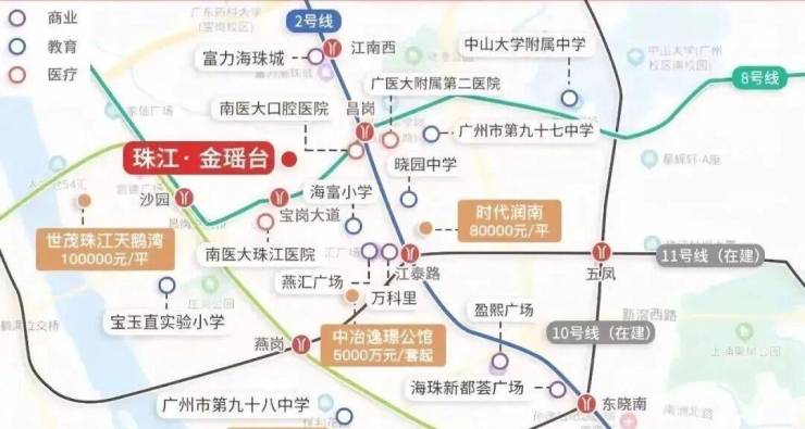项目周边有富力海珠城、江南新地、江南西名店城、万国奥特莱斯、广百广场、乐峰广场和海珠新天地等商业体。几百米外还有以平价著称的沙园市场。