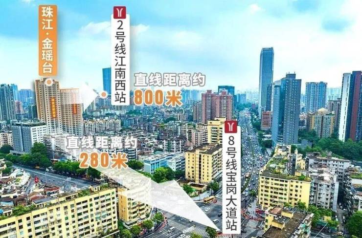 项目距离地铁8号线宝岗大道站约420米,距离地铁2号线昌岗站约830米,算是一个双地铁楼盘,乘坐地铁7站可达珠江新城,8站琶洲。