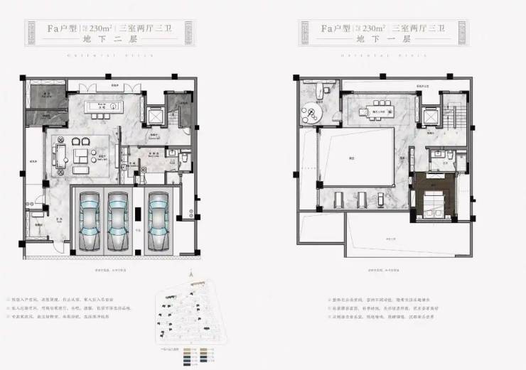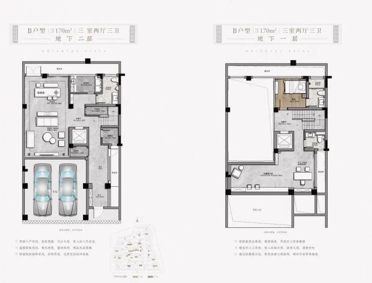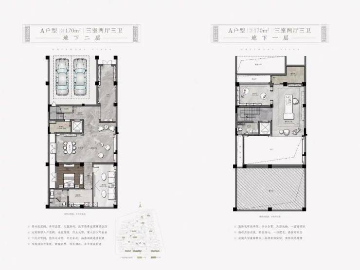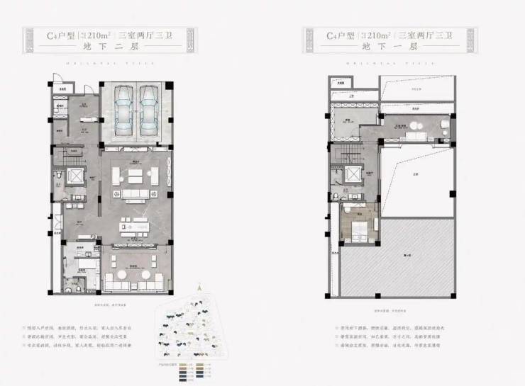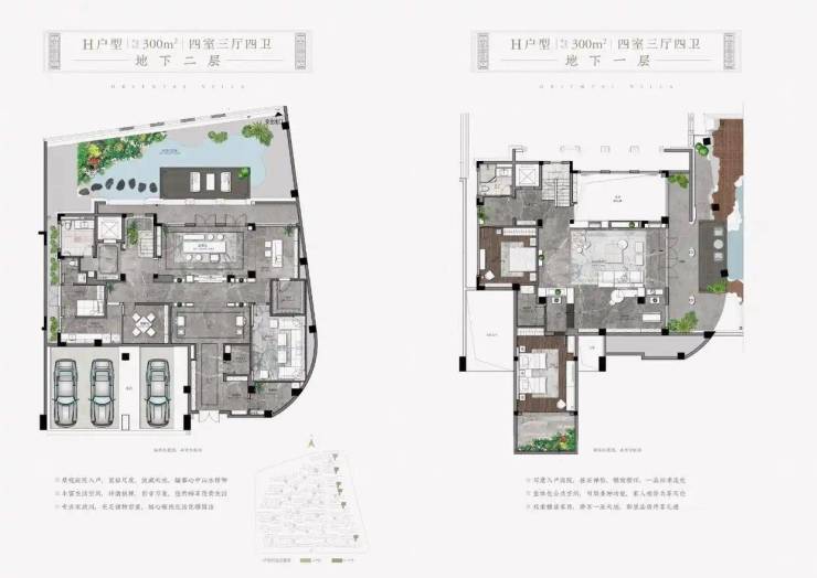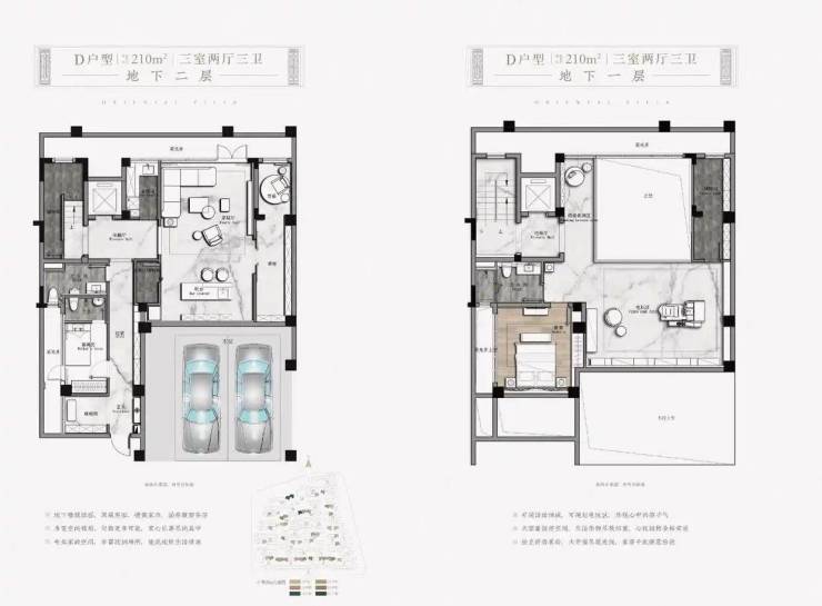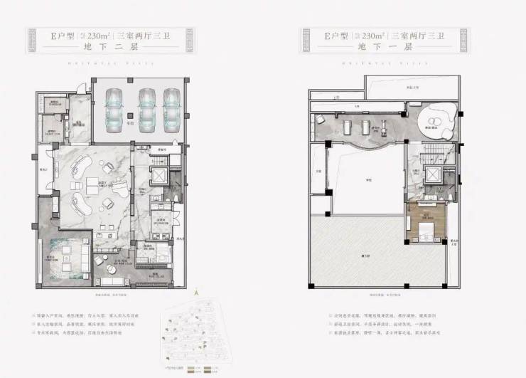 地下灵动空间:挑高约5.9米,配备至少2个采光井(部分3个),可改造为会客厅、影音室、酒窖等,部分户型带下沉式庭院,引入园林景观,提升地下空间实用性35。