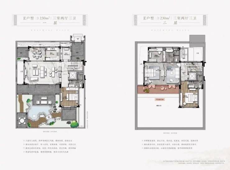 地上两层户型:建面约170-330㎡,一层设长辈房,全系配备电梯井,二层为私密主卧套房(含起居室、衣帽间、带浴缸主卫),满足三代同堂不同层的居住需求3。