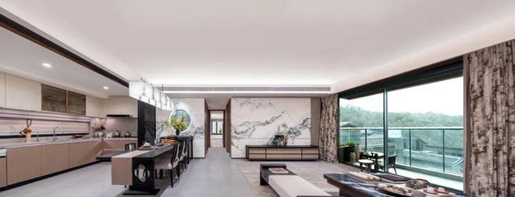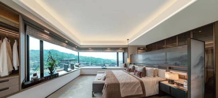 采用公建化立面设计,通过客厅的阔绰观景阳台和房间无柱全景观面飘窗台,视野开阔,实现0遮挡山景入户,与云山亲密接触。