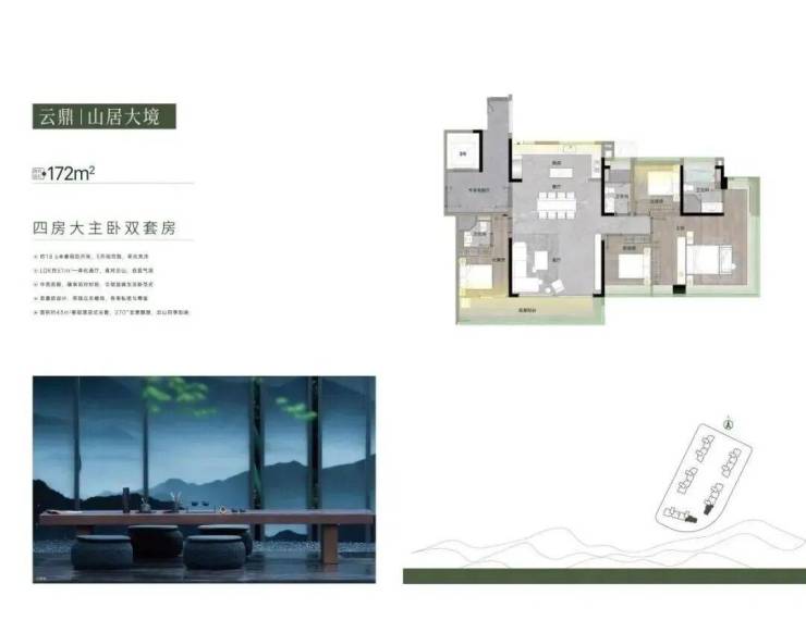 专梯专户山居环幕MAX平层,视野开阔,揽一线云山美景,低密居件环境舒适宜人,仅限319席。