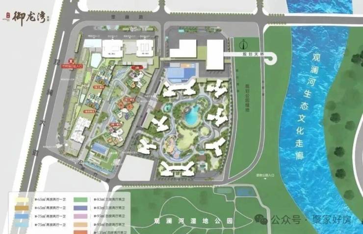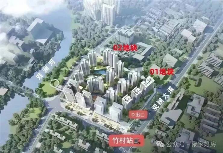 御龙湾西园,原是竹村城市更新项目,由阳基地产打造,总占地面积约8.55万㎡,总建筑面积约38.79万㎡,分2期2个地块开发,综合容积率4.53,总规划超2600多户,是由住宅+写字楼+商业+幼儿园为一体的综合体临河大盘。