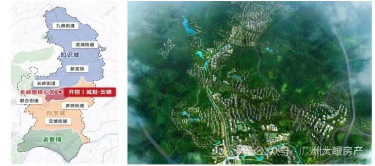 项目位处科学城板块长岭居组团,承接区域居住功能,打造高端居住、研发总部、疗养休假、体育休闲和先进制造五大功能区。