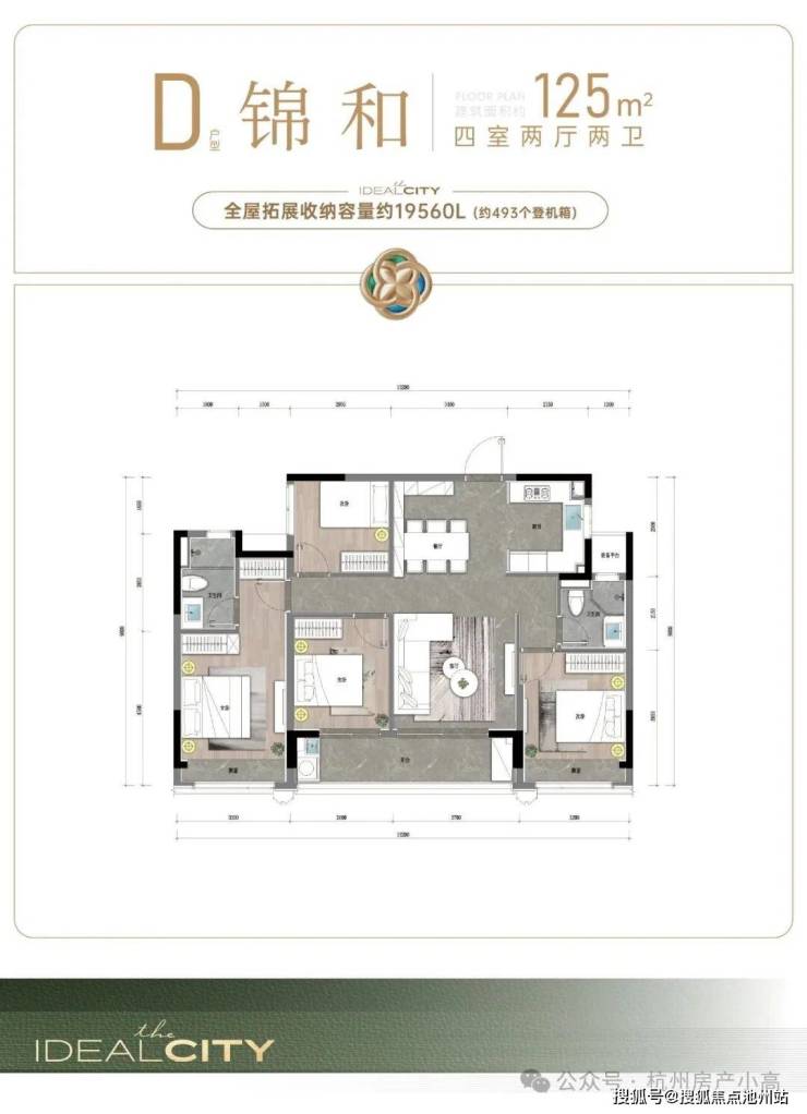 • 125㎡四房两厅两卫:双阳台设计,南向/侧边客厅可选,收纳容量约1.9万L,满足三口之家或二胎家庭需求,空间灵活实用~