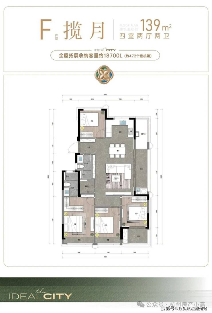 • 139㎡四房两厅两卫:四开间朝南,客餐厅一体化搭配全景阳台,采光通风极佳,主卧套房带独立卫浴+衣帽间,私密性与舒适度兼具,总价约430万,改善首选✅!