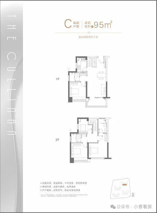 总建筑面积约10.6万㎡,设有4栋高层复式洋房,建面为85-120㎡,采用错式排布,全南向设计,通风采光俱佳,带精装交楼。