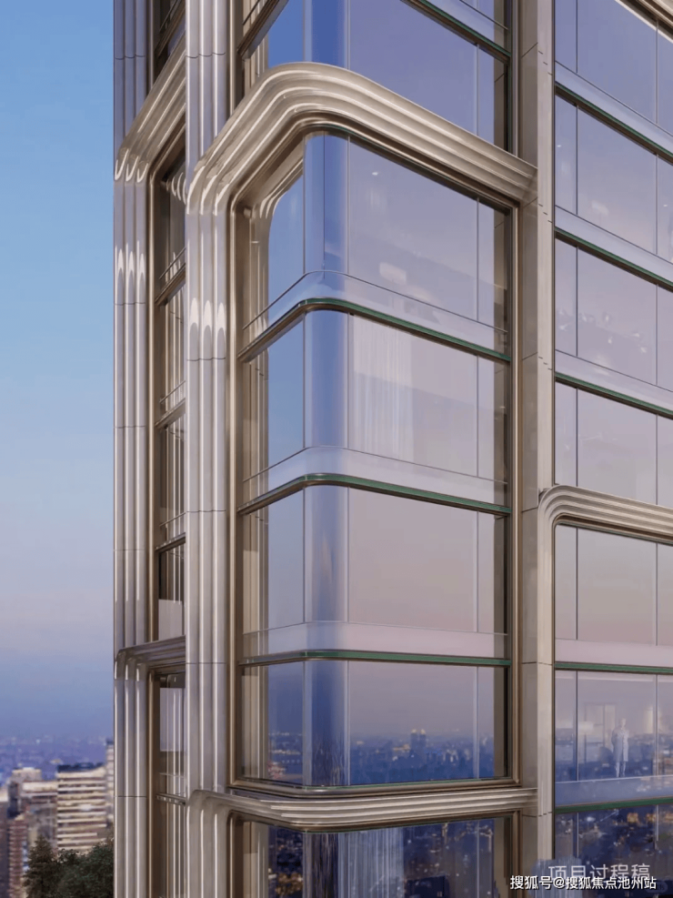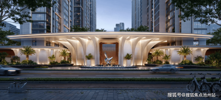 元序采用大面玻璃幕墙,通过搭配仿石铝板、釉面陶板等高端材质,组成“超流体屏”;将天然石材与高迪曲线完美搭配,虽为现代风,却无绝对直线棱角,自然形成艺术感极强的建筑单体。