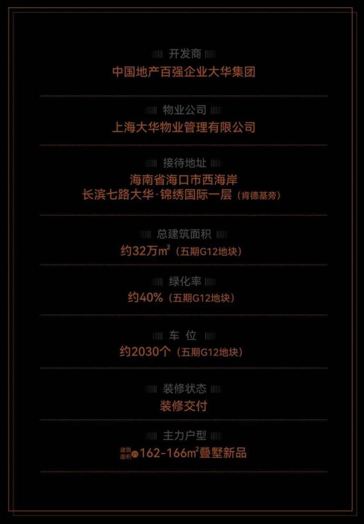 由 35 载造墅经验、深耕海南 19 载的大华集团开发(中国房企百强,连续 9 年 “三道红线” 全绿档),是大华・锦绣海岸十年封卷之作,社区规划 “九进归家” 礼序,营造尊崇仪式感。