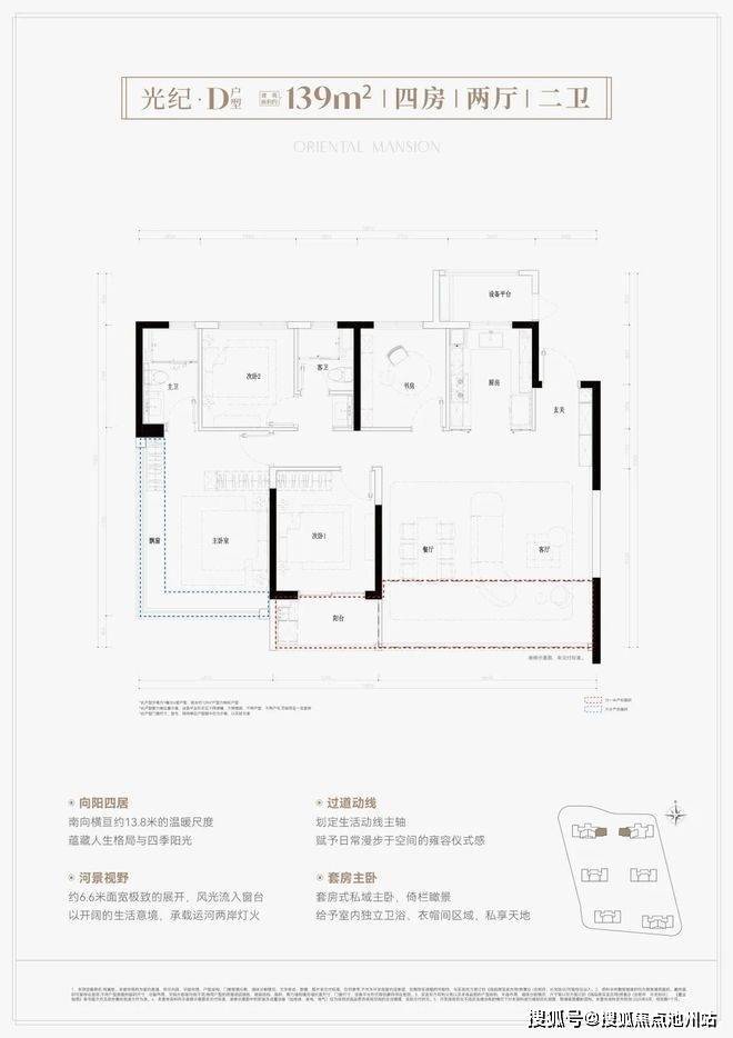 如果追求视野和仪式感,该户型完美契合。四开间朝南的王者格局,主卧配约3.5米飘窗,叠加约6.1米观景宽幕,你的家就像“运河第一排观景座”,运河船只往来间,镌刻下永不落幕的风景。