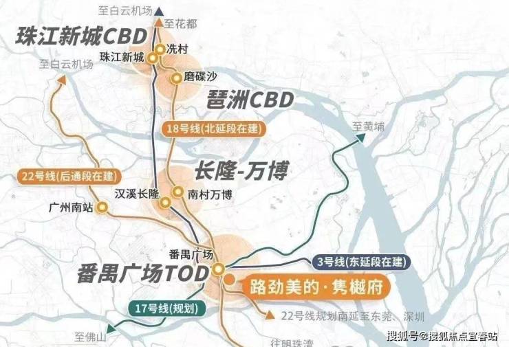 项目距离最近的地铁站3号线番禺广场站约1公里,步行约15分钟左右,18号线番禺广场站约1.2公里,步行约17分钟左右,在这里有4条地铁交汇,分别为18-22-3号线,还有规划中的17号线,去珠江新城、琶洲都是直达。