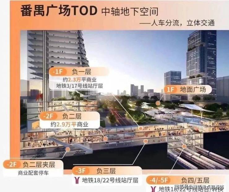 未来,番禺广场将融合中央公园、地下商业、交通场站等功能,成为城市级TOD复合型综合体,这座巨无霸会向上生长,打造约40万平巨量商圈,以260米的地标撑起城市天际线,又会向下扎根,深挖约18万平地下空间,造就一座地下都市。片区控规显示,光是3层地下商业,体量就高达7.6万平,相当于将半座花城广场(商业面积约15万平方米)搬来番禺。