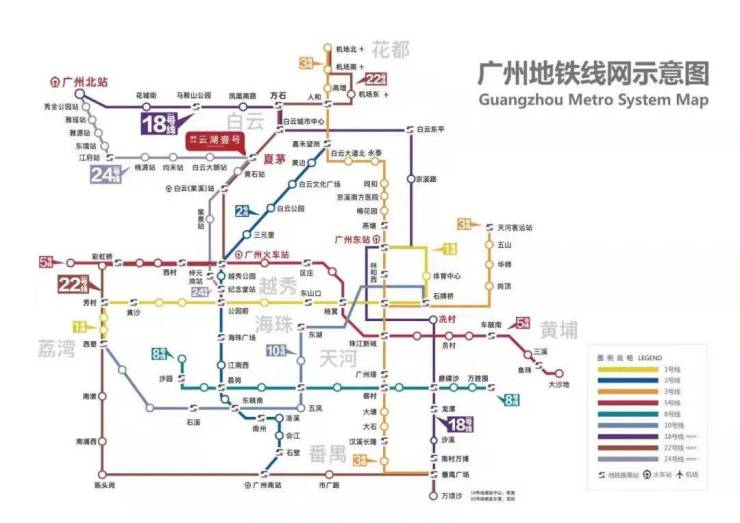 18 号线(在建中):建成通车后夏茅一站换乘可接驳 18 号线白云城市中心站,4 站到达天河广州东站。
