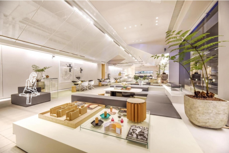 往里走,我们便来到了“白盒子”的里面,整栋建筑分为两层,一楼主打白色系,用大量的空间留白与屋顶镂空,让自然光影和谐统一,营造通透高级的艺术氛围。