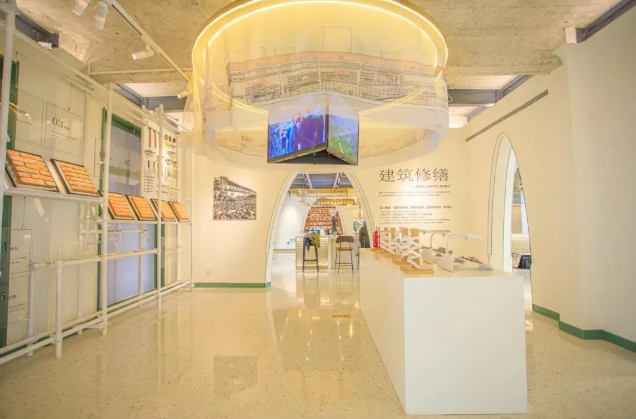 在内外连通之处,废旧器械串联成的圆环象征时光之环——一面历史,一面现代,与不远处的张之洞与武汉博物馆对望,呈现出博物馆与艺术馆的时光穿越之意。