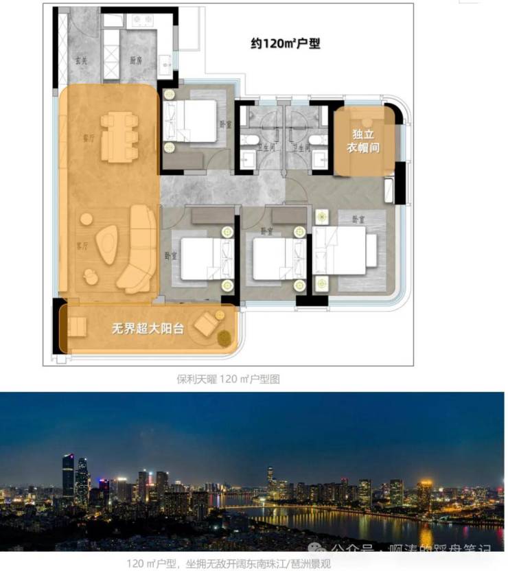 作为珠江新城首个同尺度下做到四房两卫的产品,120㎡户型拥有女王级独立衣帽间、约6.7米双面宽阳台、环幕瞰景窗等珠城稀缺的产品亮点,随着报建规则逐日缩紧,这样的户型以后很难再次出现。