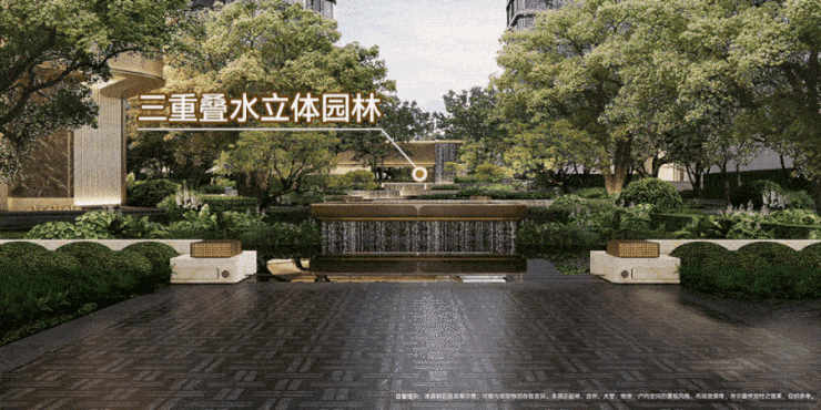 中央立体叠水园林 中心会所下沉式庭院