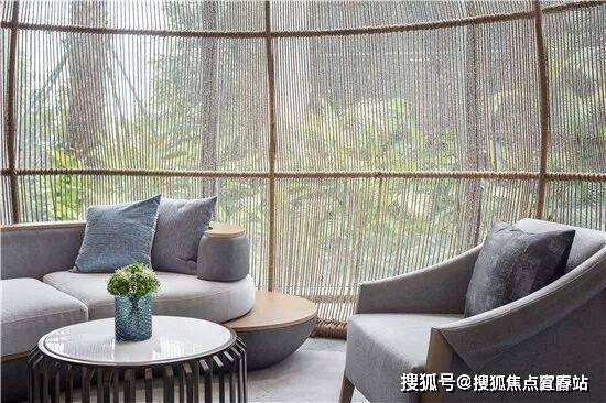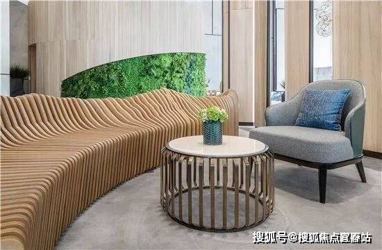 另外,围合感的空间使洽谈交流者集中精力于此,在细节的设计上设计师也做出诠释:“围”即视线的范围,更具隐私性,“透”则是视线的亮点,基于室内氛围的营造。他不单以视觉为衡量事物存在的准则,而是从空间中使用者的触感出发,进而挖掘空间的意愿和理想。