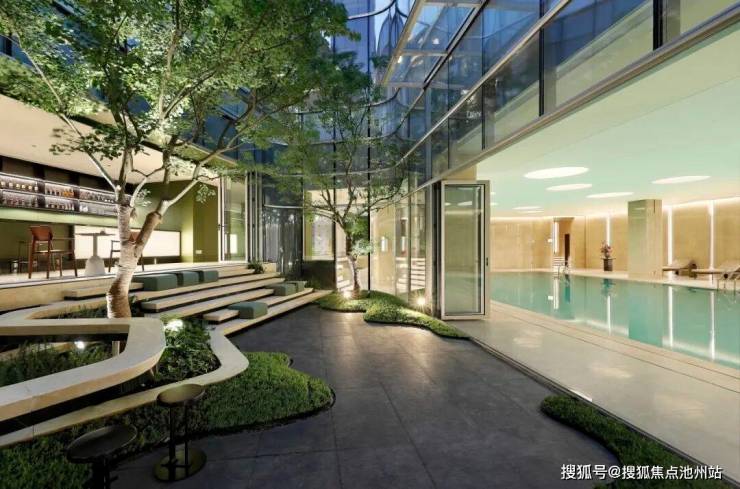 在景观营造上,泰国的景观大师Pok以钱塘江潮为灵感,结合奥体国际化气质,于杭州主场种下一座“江潮绿洲”。富有度假感的立体花园、下沉庭院、主体化架空层及多样化景观功能空间,东区将架空层与社区景观进行整体考量,带来自然且有温度的花园生活体验。